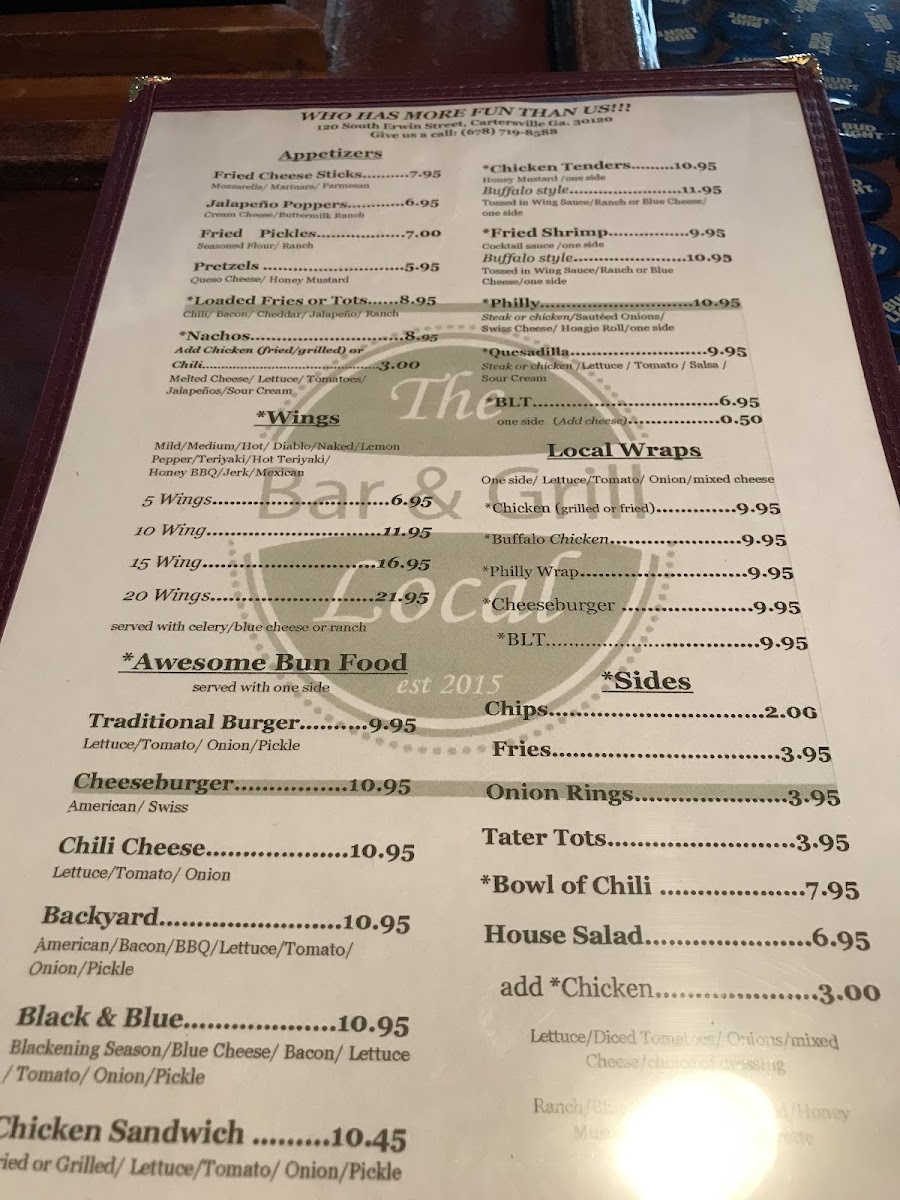 The Local Bar & Grill Menu